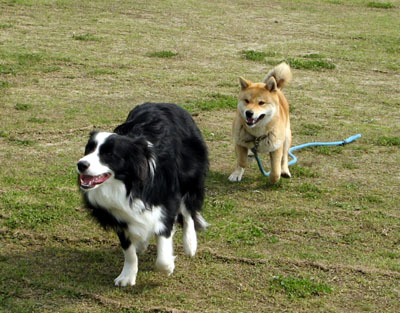 テンとナナちゃんは、会うとすぐにじゃれ合う 右のワンちゃんがちょっかいを入れる。(名前、これまた忘れた・・) |